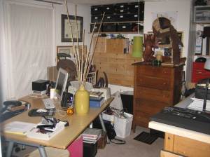 I think ideas click or some additional idea can sometimes click that makes a project take off. That kind of happened for me with the project I’m working on. The main idea had been around a while, but recently I got an idea about why the hero was involved and that made all the difference about keeping things moving.I have a fairly nice sized office, but it’s cramped because it’s got so many books crammed into it. I’m not sure what the ideal is about workspace.